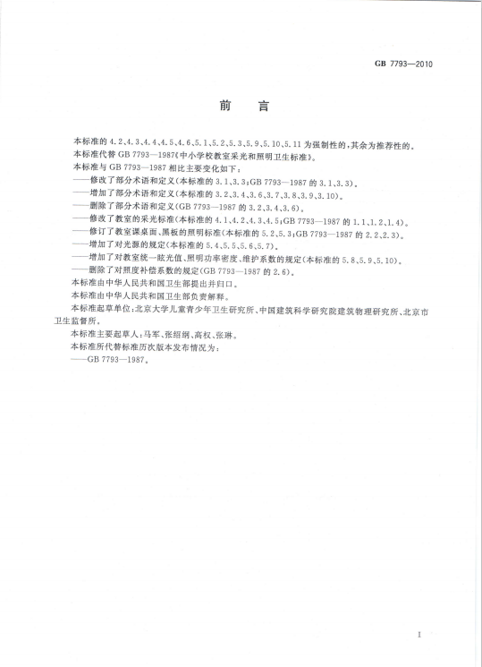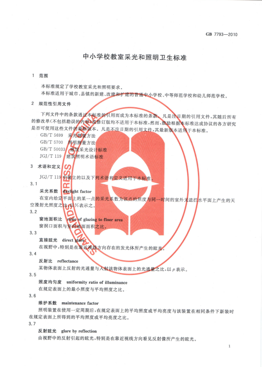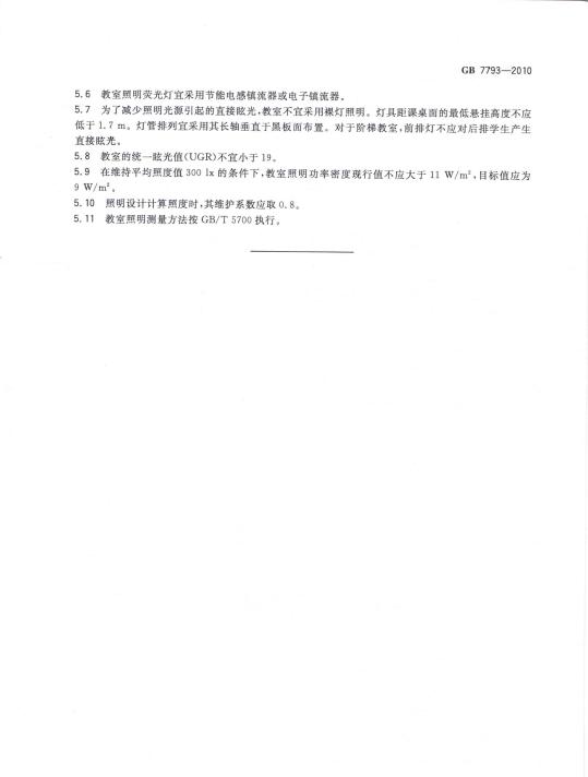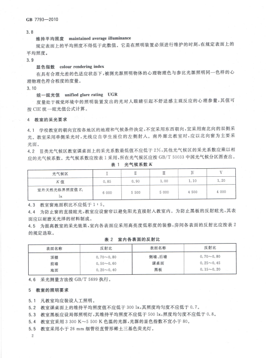 — 中小學(xué)教室采光和照明衛(wèi)生標準 —