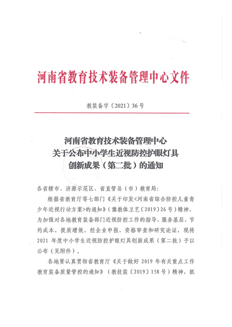 — 關(guān)于公布中小學生近視防控護眼燈具創(chuàng)新成果的通知 —