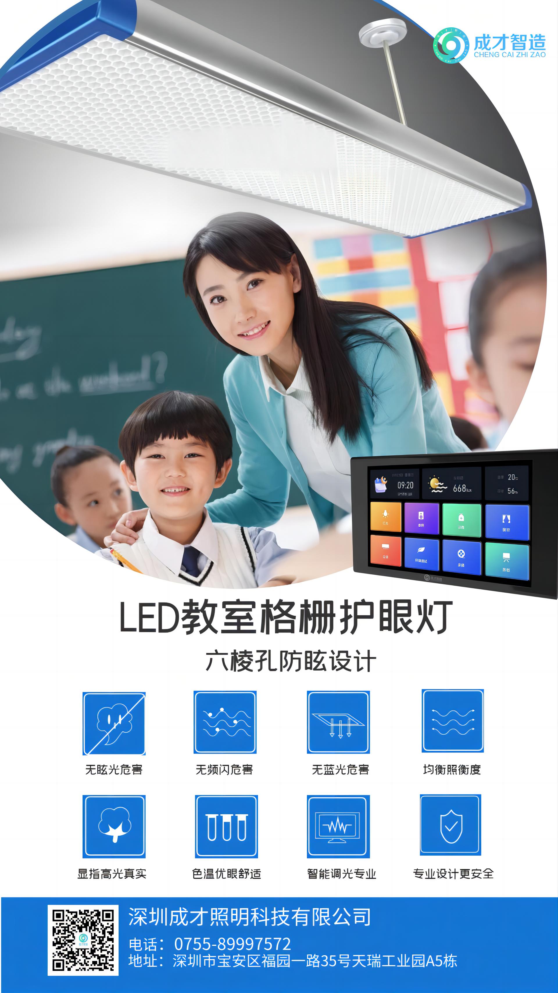 成才照明“9+3+2”的配置中各項(xiàng)照明指標(biāo)和殺菌指標(biāo)均高于國家要求,充分保障了教室照明的效果,以及學(xué)校對疾病的防疫需求,最大程度落實(shí)兒童青少年近視防控和疾病防控的目標(biāo)。