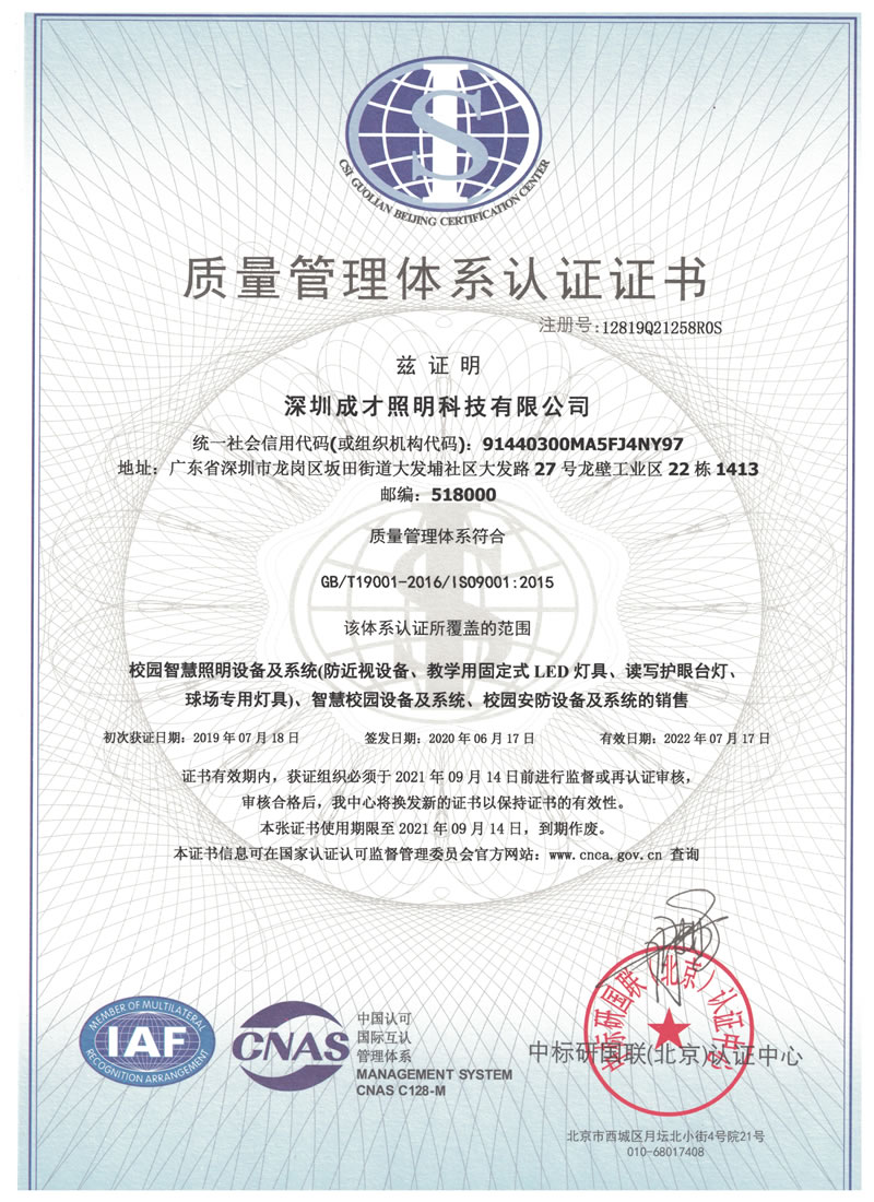 質量管理體系認證證書